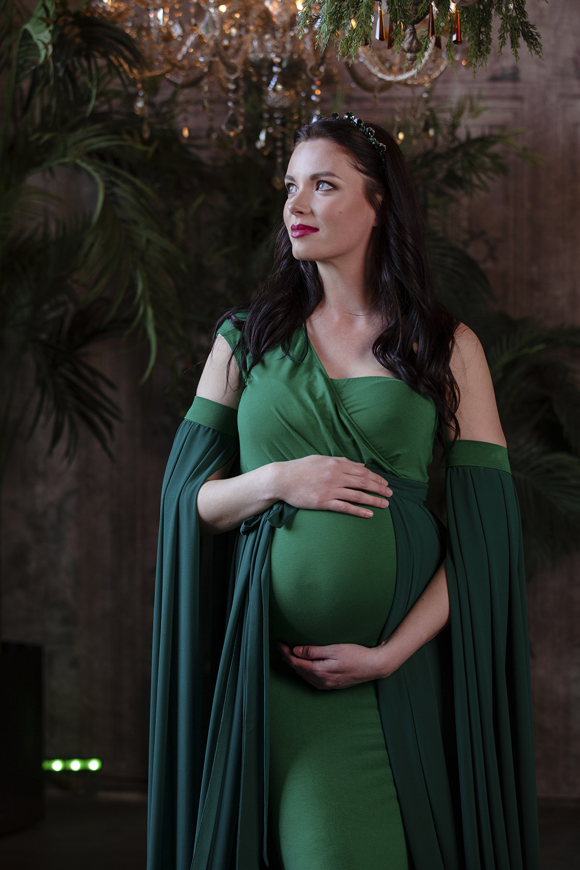 This creative dress stands out with its unique design and versatile elements, making it a showstopper for photography lovers. The base dress is made from jersey fabric that softly hugs the body, accentuating the feminine silhouette. What makes this gown truly special is the floating muslin layer, which ties under the bust and moves gracefully with every step, adding an extra touch of elegance and lightness. Additionally, the muslin details can be placed over the arms, allowing for even more creative styling options. The dress is composed of several layers, offering flexibility for dynamic photoshoots, whether capturing wind-blown moments or elegant, feminine poses. Its sophisticated yet playful style makes it the perfect choice for unique photography sessions and creative appearances.